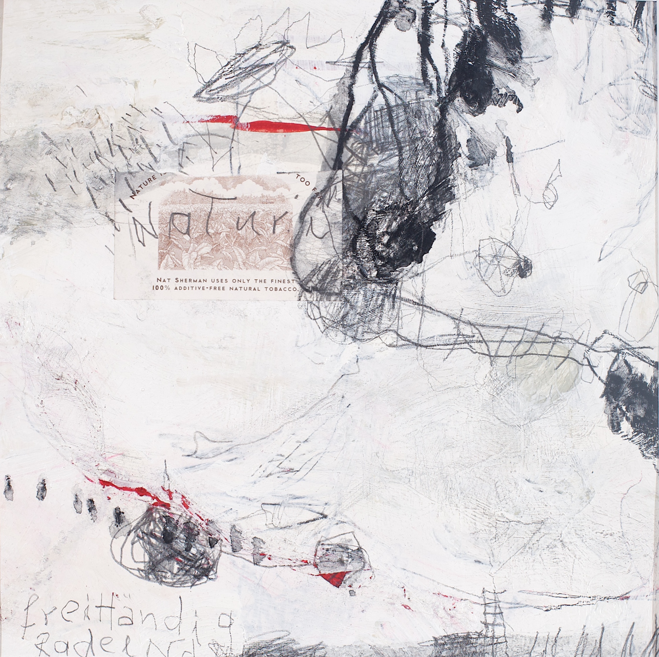 Freihändig radelnd (2) (Riding No-Hands 2), 2009/16, mixed media on paper, mounted on panel, 12 x 12 inches