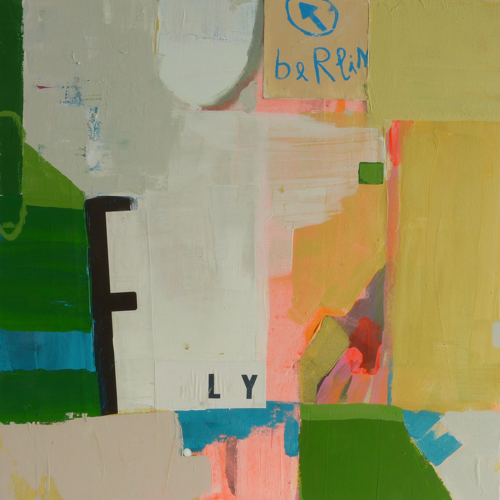 Fly to Berlin, 2023, mixed media on canvas, 20 x 20 inches
