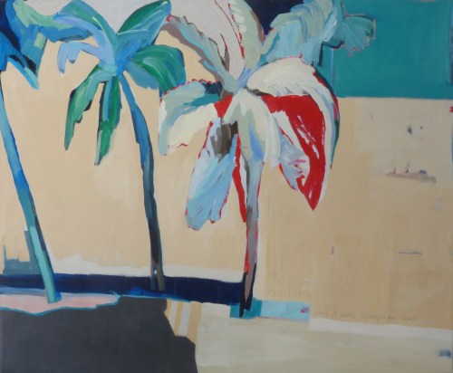 To the Times When It Rains Champagne Again, 2020, acrylic and collage on canvas, 48 x 58 inches (available at Hang Art)