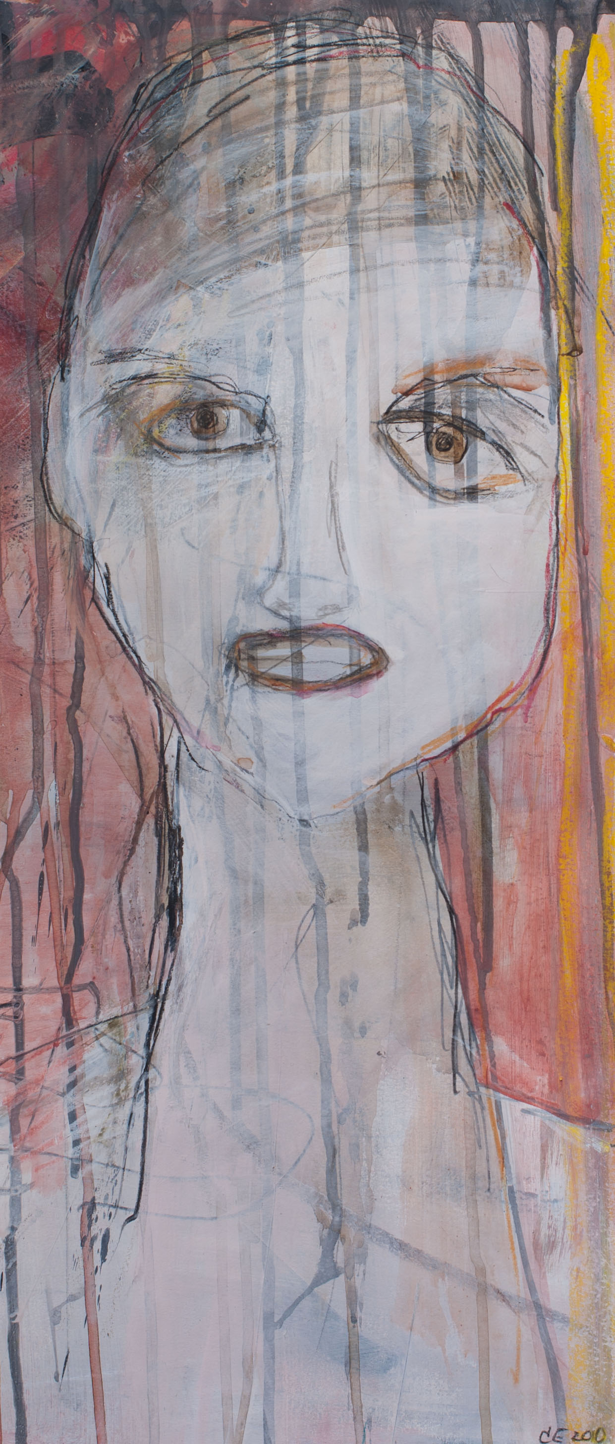 Head (8), 2010, mixed media on paper, 21 1/4 x 9 1/4 inches