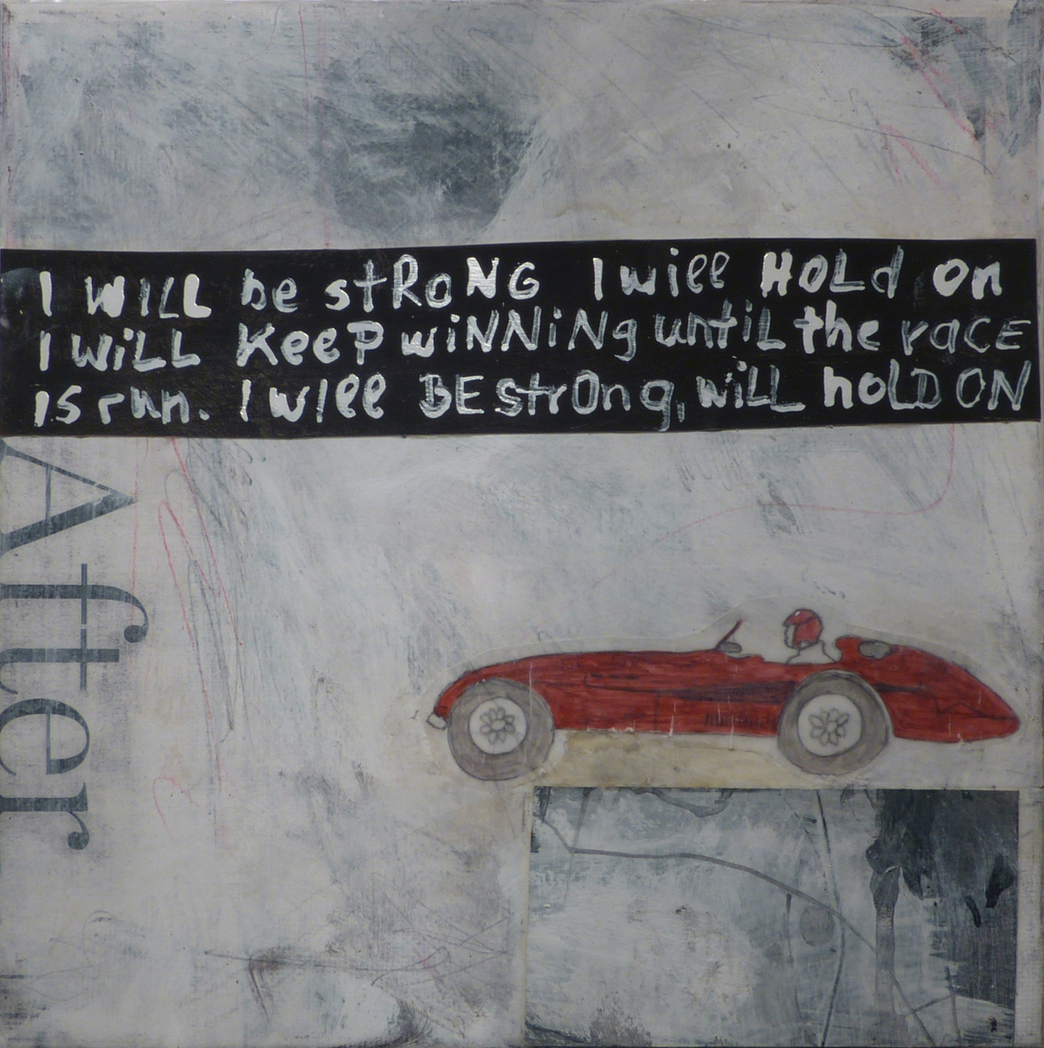 After the Race, 2013, mixed media on canvas, 8 x 8 inches (sold)